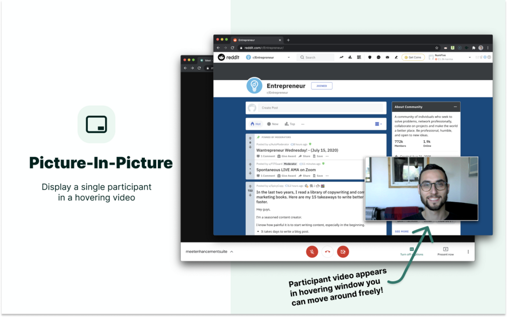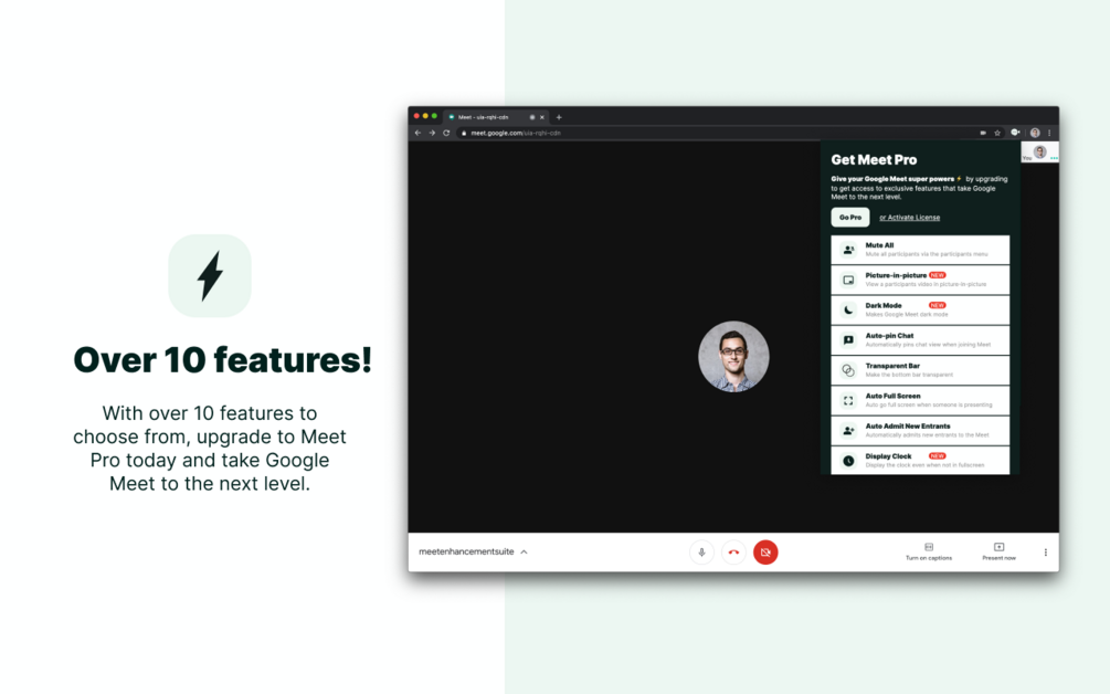 Feel free to email us at hello@meetenhancementsuite.com you get access to over 10 new features that take Google Meet to the next level.